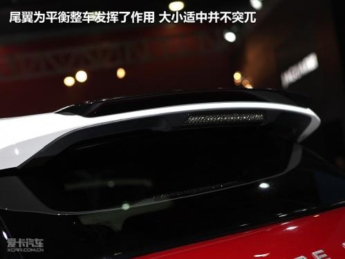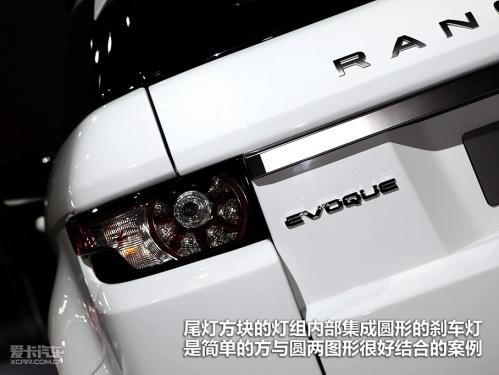 車尾左方EVOQUE表明身份,RANGE ROVER標示屬攬勝系列,以及出自路虎世家,簡潔明了,造型與家族式風格相近。