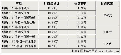 據4S店銷售人員介紹:目前明銳全系最高優惠1萬元。1.6升車型優惠6000元,2.0升車型優惠8000元,1.8TSI的兩款車型優惠1萬元。雖然優惠幅度較之前有所增加,但目前依然沒有現車,訂車最短需等一個半月,最長需等3個月。不過,某些店內有很少量現車,但優惠幅度較小,所以建議不著急用車的朋友預定車輛可獲得更高的優惠。