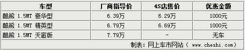 據(jù)長(zhǎng)城汽車(chē)4S店銷(xiāo)售人員介紹,長(zhǎng)城酷熊豪華型和精英型都已經(jīng)有大部分顏色的現(xiàn)車(chē)到店,消費(fèi)者可以到店提現(xiàn)車(chē)。但酷熊天窗版由于廠家并沒(méi)有投產(chǎn),導(dǎo)致沒(méi)有現(xiàn)車(chē),而且也不能接受預(yù)訂。另外,銷(xiāo)售人員表示,目前購(gòu)買(mǎi)酷熊車(chē)型可給出千元的現(xiàn)金優(yōu)惠,對(duì)于消費(fèi)者而言無(wú)疑是一個(gè)好消息。