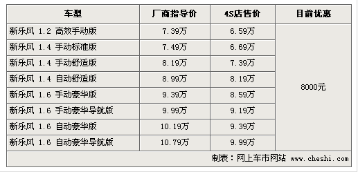 據4S店銷售人員介紹:目前雪佛蘭新樂風全系優惠達8000元,較之前優惠幅度持平。1.2車型目前無現車,預訂需等1-3周左右。由于1.2升較小的排量與新樂風略大的車身配比并不十分完美,所以選擇1.4升排量車型消費者較多,同時現車也非常充足,顏色較齊全。1.6升車型目前現車較少,顏色也不夠齊全,銀色車型較多,預定需等待1-2周時間。