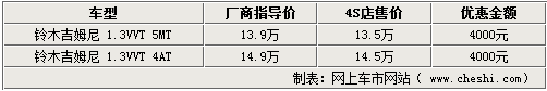 鈴木微型SUV-吉姆尼的動力源于鈴木運轉平穩的M13A DOHC發動機,該發動機以其反應靈敏、高燃油效率而聞名于世,且頗受年輕消費者的青睞。網上車市網站了解到,目前在北京地區購買進口鈴木吉姆尼可以得到4000元的現金優惠。具體詳情如下: