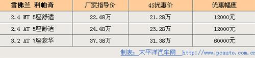 筆者日前走訪北京上海通用雪佛蘭4S店時(shí)獲悉,目前科帕奇最高優(yōu)惠達(dá)到6萬元,科帕奇的性能體現(xiàn)了美國SUV的風(fēng)格,大部分時(shí)間是在公路上飛馳,能夠擁有一般轎車無法比擬的高度和視野。偶爾想要撒一下歡或者應(yīng)付一下壞路也不會(huì)讓你失望。詳情請(qǐng)見下表:
