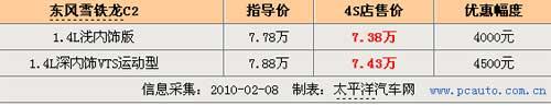 筆者近日走訪北京東風(fēng)雪鐵龍4S店時(shí)獲悉,目前店內(nèi)一批1.4L C2增配車型正進(jìn)行促銷,除了增加(駕駛座椅高度可調(diào)、電動(dòng)后視鏡、電動(dòng)后窗)等配置外,現(xiàn)金優(yōu)惠方面也最高達(dá)到了4500元,算下來累積優(yōu)惠達(dá)到萬元左右。據(jù)了解4S銷售人員表示他們更看好1.4升車型在北京市場的銷售,原因主要是C2作為一款以運(yùn)動(dòng)、時(shí)尚和外觀為特點(diǎn)的小車型,吸引的更多是年輕人的目光,而這批獨(dú)有顏色的車型也是為了迎合了此類需求。