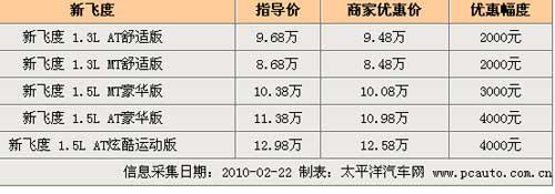 節日的喜慶氣氛慢慢退去,但車市的火爆程度卻依舊。近日筆者從北京地區廣汽本田4S店獲悉,飛度車型目前仍然貨源緊缺,現在預定最高可享受4000元的優惠,詳細價格見下表: