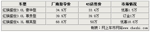 紅旗轎車在中國可謂是國貨中的精品,紅旗盛世車型對大家來說更不會陌生。單憑曾經(jīng)擔任過各大重要會議指定用車這一點,就證明了紅旗盛世的超高品質(zhì),更何況還一度加盟首汽國賓隊,作為中國的驕傲服務(wù)國際友人。一直以來一向以中央機關(guān)和外事接待任務(wù)為主的紅旗盛世,現(xiàn)在離老百姓的生活也很近,很多一直喜歡紅旗轎車的朋友都很關(guān)注盛世的市場情況。就此,網(wǎng)上車市走訪了一汽紅旗北京地區(qū)4S店,了解到紅旗盛世最新的市場情況,具體信息請參考下表: