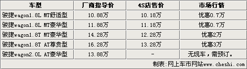 駿捷wagon目前上市已經有很長時間了,這款車在春節前的優惠比較高,但近期的價格明顯有所提升。如果不是買斷銷售,駿捷wagon 1.8T車型很難有2萬元以上的優惠幅度。但是,銷售情況比較好的駿捷wagon 1.8L車型,在價格優惠方面卻并沒有太多增進。