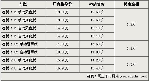 速騰是一汽大眾的主力經(jīng)濟型轎車,自上市后得到了廣泛消費者的關注。速騰車型的覆蓋范圍較廣,排量分為1.6L、1.8T以及2.0L,基本上涵蓋了家用級轎車所有的排量。近日據(jù)網(wǎng)上車市價格監(jiān)測系統(tǒng)顯示,速騰全系出現(xiàn)了最高1.5萬元的現(xiàn)金優(yōu)惠,具體詳情請看下表: