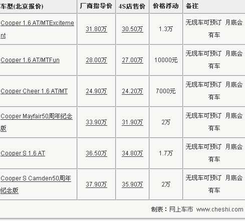 據北京MINI經銷店銷售人員介紹,目前MINI Cooper全系最高優惠2萬元。入門級的Cheer版經過7000元優惠后,售價從24.9萬元下降到了24.2萬元。而兩款50周年紀念版車型的2萬元優惠達到了全系的最高,其他車型優惠1-1.3萬元不等。