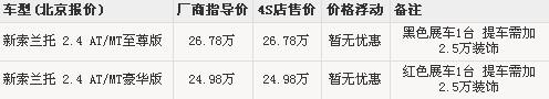 據進口起亞4S店銷售人員介紹,目前進口起亞索蘭托現車比較緊張,店內只有2臺展車可出售,豪華版展車為紅色,至尊版展車為黑色。但提車需要加裝2.5萬元的裝飾,如果預訂需交定金1萬元,3個月左右時間可以提到車。如消費者有意購買,可到店進一步詳談。