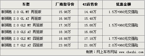 據(jù)4S店銷售人員介紹,目前購買獅跑可以贈送960元的交強險,同時有1.5萬-2萬元不等的現(xiàn)金優(yōu)惠。兩驅(qū)標(biāo)準(zhǔn)版優(yōu)惠后售價僅為14.48萬元。目前經(jīng)銷商處有黑色、銀色等現(xiàn)車供應(yīng),藍(lán)色等款需要預(yù)定,訂金為2千元,月內(nèi)便可以順利提車。