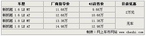 別克新凱越全系降2.2萬 1.6L車型現車足