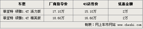 作為一款三廂緊湊型轎車,領(lǐng)雅搭載了一款1.4T渦輪增壓發(fā)動機(jī),在同級車中較為少見。雖然菲亞特系列新車保有量比較少,但仍有眾多消費者關(guān)注目前的車型。根據(jù)網(wǎng)上車市價格監(jiān)測系統(tǒng)顯示,目前菲亞特領(lǐng)雅雖然有2萬左右的優(yōu)惠,但店內(nèi)現(xiàn)車比較緊張,具體行情如下: