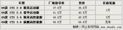 據4S店銷售人員介紹:目前在售的凱迪拉克09款CTS共有2.8L和3.6L兩個排量車型。這4款車型目前優(yōu)惠幅度較小,最高優(yōu)惠3萬元。2.8L車型目前優(yōu)惠1萬元,3.6升精英版優(yōu)惠3萬元,頂配車型無現(xiàn)車。由于CTS在凱迪拉克系列中不是主打車型,所以優(yōu)惠幅度較小,也與其進口車型有關。如果您對此款車感興趣,請及時與店內聯(lián)系。