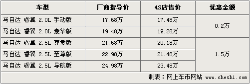 馬自達睿翼最高降1.5萬 最低售17.48萬元