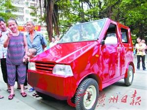 “做這玩意兒主要出于愛好。”留著淺平頭的湖北黃石人彭易然坦然而得意地告訴記者,7年來一直在東莞長安霄邊從事送水、送氣的他,很想擁有一輛自己的轎車,但是高昂的車價使得他望洋興嘆。于是在去年9月,僅有小學學歷的他突發奇想“自己做一輛”。