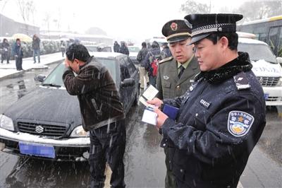幾天的大雪,使頤和園周邊的地鐵4號線附近黑車聚集。昨天清晨,海淀警方聯合區城管、交通執法部門在青龍橋派出所集合,對地鐵4號線頤和園、西苑站周邊的治安秩序及黑車非法攬客進行清理。數名司機接受檢查,經過城管及交通執法部門甄別后,對黑車司機進行警告和教育。