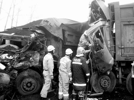 10時30分許,禹州市花石鄉境內倔山村附近,兩輛滿載煤炭的大貨車相撞,4名人員受傷被困。禹州消防大隊接警后迅速趕往現場。由于霧大,車速受到限制,消防官兵在途中與報警人保持通話,電話指揮在場人員自救,在消防官兵趕到前,有3名被困人員成功獲救。