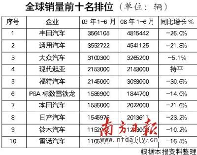 處于危機中的市場,誰能最低限度地保持自己的跌幅,誰就贏得了市場。近日,美國汽車新聞(AutomotiveNews)公布了2009年上半年各家汽車廠商在全球的銷量資料,現代汽車表現出足夠的抗跌性,已經超越福特汽車,爬升至全球老四的位置。而經過鳳凰涅槃的通用汽車,上半年的銷量則縮小與豐田的差距,有可能重新奪回世界銷量第一的寶座。目前,在世界排名前10的廠商中,亞洲車企獨占一半,歐洲車企有3家,美國則只剩下了2家。經歷了一場浩劫般的危機后,世界汽車市場的格局有望重新排列。