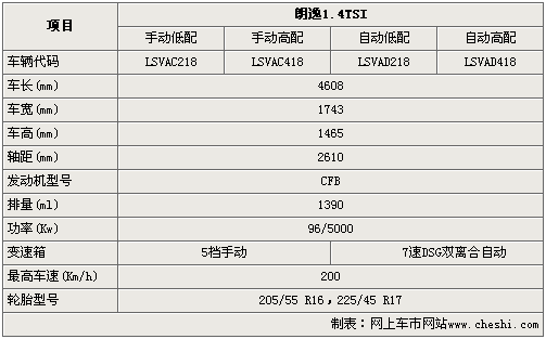 朗逸1.4TSI車型于上海國際車展首演后將于年內正式上市,相比普通版版車型朗逸1.4TSI不僅在外觀和內飾上均有不同程度的變化,而且還將搭載1.4升渦輪增壓燃油直噴引擎。雖然朗逸1.4TSI車型離上市還有一段時間,但是通過以下參數配置曝光,我們可以提前一睹朗逸旗艦車型的到底具備怎樣的性能。