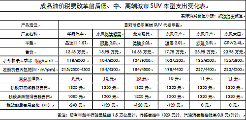 通過(guò)上面表格我們可以一目了然的看出,目前市場(chǎng)上中高端SUV在燃油稅開(kāi)征后各家產(chǎn)品的成本花費(fèi)。