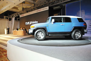 發布會上,豐田汽車中國本部長代代木昭展示了2006~2007年SUV車型在中國市場的飛速增長趨勢,表明豐田從去年開始已注視中國SUV市場,豐田今年投放三款重磅SUV車型:漢蘭達、蘭德酷路澤以及FJ酷路澤均選在年內上市發布價格,占領了國內市場的中、大型SUV市場一定份額。