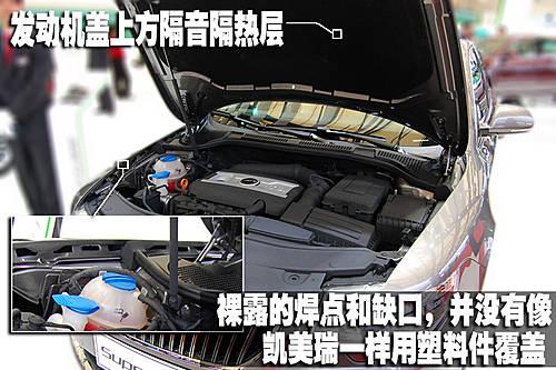新帕薩特領馭延續了老款車型的優良公益,發動機罩上方帶有面積很大的隔音隔熱層。發動機艙布局非常整齊,在車身與發動機蓋之間還有一條很寬大的密封條整體做工確實給人一種非常嚴謹的感覺。