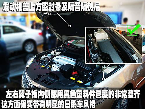 廣豐凱美瑞可以說是日系B級轎車中的代表作,其發動機艙內布局不僅工整而且在前格柵上方以及兩側翼子板這些空隙的地方都用塑料件覆蓋,提升了發動機艙的整齊程度看上去非常嚴謹和美觀。