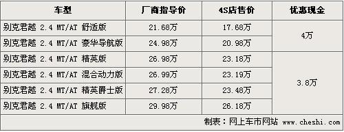 別克君越優惠超過4萬 入門車型最低不足18萬