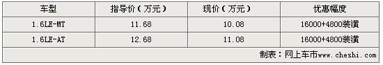 經銷商人員表示,購買別克新凱越車型除了可以得到1.6萬元價格優惠外,還可以得到4800元的汽車裝飾。優惠后的新凱越1.6LE-MT售價僅為10.08萬。銷售人員還表示,目前新凱越各款車型的貨源較為充足,顏色齊全,自動擋型多,手動的比較吃緊。