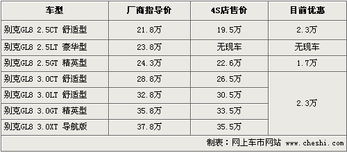 別克GL8降幅增至2.3萬 入門車跌至19.5萬
