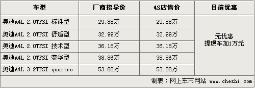 奧迪新A4L現貨緊張 部分4S店加價1萬可提現車