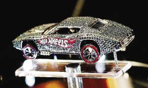上個月,美國紐約,一輛以1∶64的比例制作而成的鉆石跑車亮相風火輪(HotWheels)舉行的40周年慶典游行上。該鉆石跑車由著名珠寶設計師Jason Arasheben 設計而成,用在小車上的鉆石約有2700多顆,總量達23克拉,單鉆石的價值就達14萬美元。