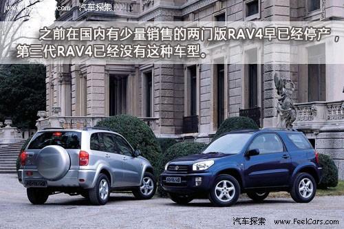 由于RAV4在美國和歐洲地區都有銷售,考慮到歐洲消費者的用車習慣之前的兩代產品均有兩門版。而從2006年開始生產的第三代產品開始就已經不再提供兩門車型,因此可以肯定國內也不會再有兩門版RAV4銷售了。