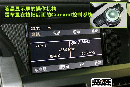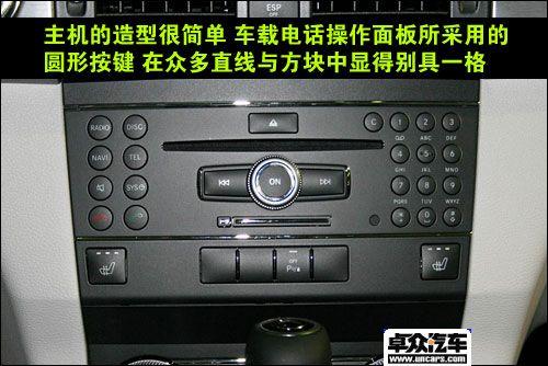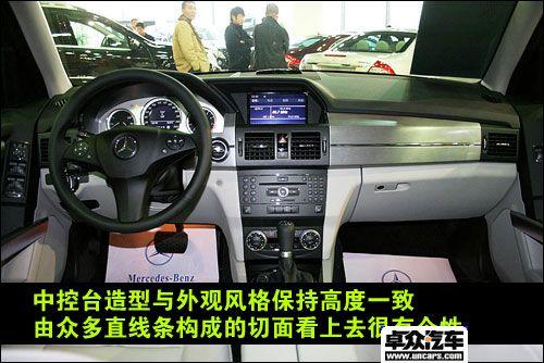 GLK的中控臺與外觀造型一樣,采用大量的直線條和切面,硬朗風格與外觀保持一直。不過也不缺少時尚新鮮的元素,像中控臺上的銀色裝飾就起到了很好的點綴作用。三個獨立圓形的儀表采用了很特別的設計,信息顯示屏占據了中央的圓形部分,非常新鮮。方向盤也不例外,雖然設計簡單,但是看上去很骨感很漂亮。主機的造型也很簡單,與它集成在一起的車載電話操作面板采用了圓形的按鍵設計,在眾多直線與方塊中顯得別具一格。