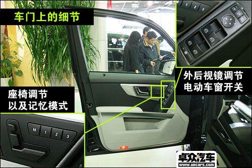 我們這次拍攝到的GLK350是GLK系列中的頂級車款,它配備有車載電話、液晶顯示屏、后排空調出風口、多功能方向盤、全景天窗、電動座椅調節、頭枕高度電動調節,并且帶有記憶模式等等舒適性配置,同時8安全氣囊、ESP的配備又為GLK上了一把安全鎖。