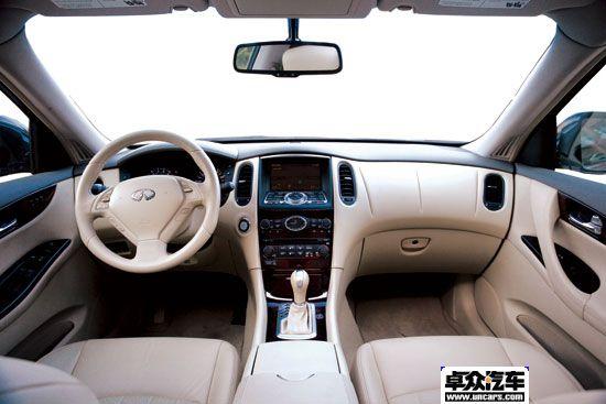 與X3注重動(dòng)力與操控的主思路相反,EX35的跨界理念使它在舒適性方面贏得了不少實(shí)惠,轎車(chē)化的內(nèi)飾配置和舒適度,使得EX35在駕乘舒適性方面與X3之間形成了不小的差距。首先感受到的就是轎車(chē)式的內(nèi)飾布局以及座椅設(shè)計(jì)與SUV的典型設(shè)計(jì)背道而馳,至少在坐姿上找不出SUV的感覺(jué),下陷式的座椅、視野模式完全是駕駛轎車(chē)的感覺(jué)。而且EX35的內(nèi)飾設(shè)計(jì)中透出不少舒緩的氣氛,大量曲線的應(yīng)用和圓滑的邊角過(guò)度帶來(lái)的是很輕松的視覺(jué)效果,與X3的棱角分明形成了鮮明的對(duì)比。淺色內(nèi)飾給車(chē)廂內(nèi)增加了不少明亮干凈的感覺(jué),而且真皮包裹的多功能方向盤(pán)也采用了與內(nèi)飾主色調(diào)相同的淺色設(shè)計(jì),這樣的設(shè)計(jì)也許是在有意通過(guò)這種并不耐臟的顏色來(lái)顯示EX35的擁有者們的身份。EX35形狀獨(dú)特的儀表盤(pán)、擋把上的金屬裝飾、運(yùn)動(dòng)場(chǎng)形的空調(diào)出風(fēng)口等這些別具匠心的設(shè)計(jì),相信會(huì)吸引住不少女性消費(fèi)者的目光。除此之外設(shè)計(jì)師們閑情雅致地在副座儲(chǔ)物箱的表面留下了3道凹痕,除了美觀與個(gè)性的效果外,似乎是在炫耀柔軟的材質(zhì)和精湛的工藝。
