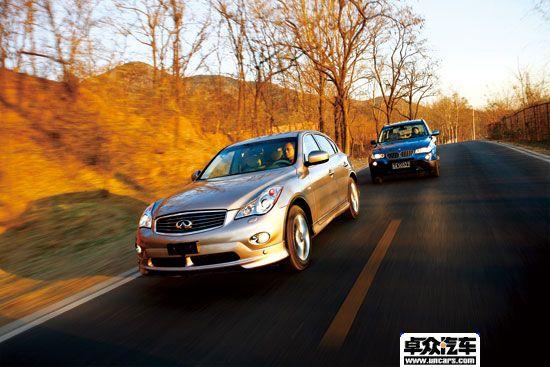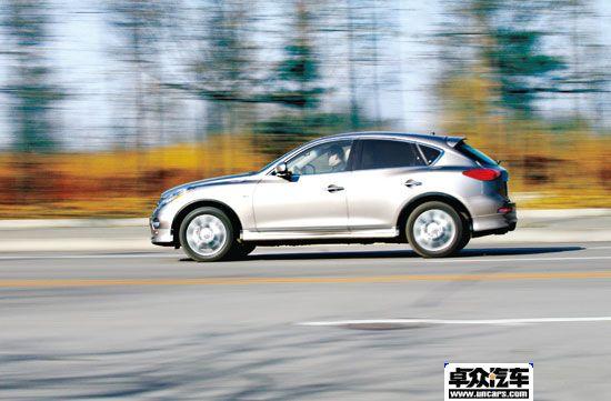 注重舒適絕不代表就會(huì)忽略動(dòng)力與操控性。這是EX35的跨界理念帶給我們最直觀的感受。EX35搭載的是日產(chǎn)的明星發(fā)動(dòng)機(jī)VQ35HR,HR是高轉(zhuǎn)速發(fā)動(dòng)機(jī)的英文縮寫(xiě),但是千萬(wàn)不要將高轉(zhuǎn)速發(fā)動(dòng)機(jī)與 “低速無(wú)動(dòng)力”劃上等號(hào)。雖然4 800 r/min時(shí)才爆發(fā)出來(lái)341 N?m的最大扭矩,導(dǎo)致了低轉(zhuǎn)速時(shí)的加速性能不像X3那樣犀利,但是3.5 L的排量對(duì)付1 868 kg的整備質(zhì)量還是不成問(wèn)題的,較為迅猛的提速也可以實(shí)現(xiàn)。高速時(shí)的提速能力和高速續(xù)航能力,才是這款發(fā)動(dòng)機(jī)的特色所在。