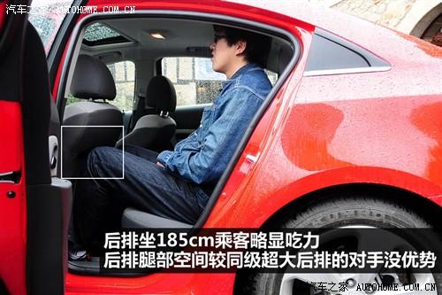 后排空間方面,大家擔心的比較傾斜的C柱好像對后排頭部空間影響不太大,185cm的朋友坐在后座頭部還留有一絲空間,我相信普遍性身高175-180cm的男性對于科魯茲的頭部不會太挑剔的。后排腿部空間科魯茲也是中規中矩,185cm身高是峰值高度了,再高了的用戶我們不推薦購買科魯茲。