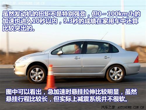 不過單憑2.0L的發動機我們很難相信標致307的表現會如此接近速騰冠軍版,車重應該也是關鍵因素之一,要知道冠軍版速騰的重量達到了1.4噸,而標致307最重的也才1.3噸出頭,這使其有能力在與速騰冠軍版的加速比拼中望其項背。而在實際測試中我們發現,307的5速手動變速箱也拖累了它的成績,由于換擋行程不夠緊湊,導致307在換擋時動力銜接不夠順暢,損失了部分時間,但不管怎么說,9.3秒的成績還是相當有說服力的,值得推薦。