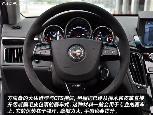 再看看特點,除了內飾透出的動感元素外,材料的選用在CTS-V上也十分講究!這里我只說一點,就是內飾細節中很多都采用了類似翻毛的皮革。如在方向盤握把上;變速器擋桿兒上以及座椅與身體貼合的部位均使用了這種面料,通過靜態與駕駛的體驗,翻毛皮不只表現出極好的手感,在摩擦力與防滑作用上也特別到位,因此個人也是非常喜歡!