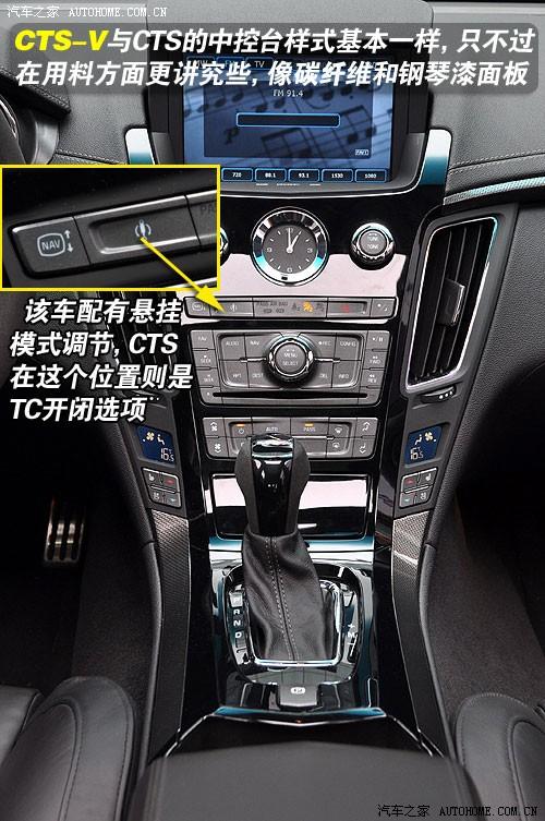 在CTS-V車內,我看到了不少運動型或性能車上所具有或沒有的特點,說起來有些繞口,首先談談共性。一般情況下,運動型車內都會用深色為基調的內飾并搭配碳纖維面板,有些車上還會用白色縫合線與深色高等皮質搭配,這樣一來,不僅樣式好看,它所透出的動感也是無法掩蓋的。