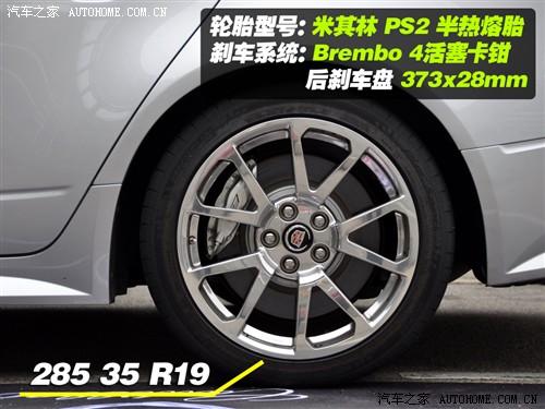 凱迪拉克CTS-V在出廠時標配的輪胎為米其林PS2半熱熔輪胎(搭配輕量化的輪轂),尺寸達到了前245mm后285mm,無論從寬度還是性能上,這套輪胎都達到了比較專業的水準!甚至有很多場地賽的車都未必能配備這種性能的輪胎(這句話是一位陪駕車手的原話),其優勢就是抓地力強,極限較高,但不足則是高強度的駕駛后,輪胎的損耗較快,成本也不低,一天的試駕會下來,四條輪胎就要全部換掉,心疼啊……