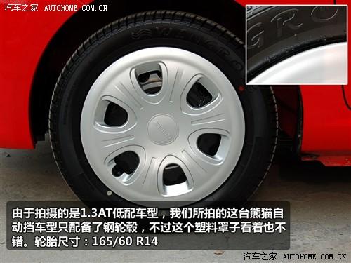 我們所拍攝的熊貓1.3L AT低配車型配備的是大小為14英寸的佳通輪胎,鋁合金輪轂也理所當然的沒有配備,不過低配熊貓的這款塑料外殼做的還算精致,配在165/60 R14的熊貓車胎上并不顯得突兀。