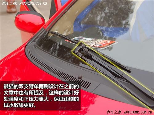 雙支臂單雨刷是熊貓和其他微型車的不同之處,這樣的設計好處是能夠提供給雨刷更多的貼合壓力,同時其本身的強度也更高,拭水效果當然也就更好了。不過缺點就是更換雨刷的時候可能會有些小麻煩,當然這也是仁者見仁的事兒了。