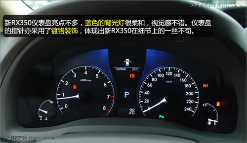相對(duì)于充滿驚喜的方向盤(pán),新RX350儀表盤(pán)的亮點(diǎn)并不多,藍(lán)瑟的背光燈很柔和,視覺(jué)感不錯(cuò)。值得一提的是儀表盤(pán)的指針亦采用了鍍鉻裝飾,體現(xiàn)出新RX350在細(xì)節(jié)上的一絲不茍。