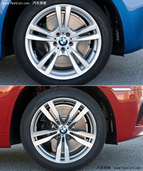其他方面,前輪275/40R20、后輪315/35R20的高性能運動輪胎進一步加強了魁梧車身的運動氣息,細心觀察還可發現X5M同X6M的20寸超輕輪轂的造型雖然相似但還是有些許不同。為了保證足夠的制動力和良好的視覺效果,四輪均采用了四活塞卡鉗的制動系統。