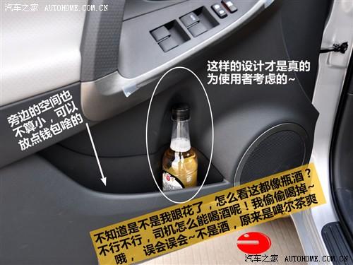 說RAV4的儲物功能,要從頭說起。遵循先左后右的習慣,我們就從左前車門說起。前車門有儲物格是很平常的,不過除此以外,RAV4為我們經常會喝的600ml規格飲料設計了很妥貼的位置。后車門沒有其他儲物功能,但只有這一個放飲料瓶的位置就足夠貼心了,因為確實不是擺樣子的,非常實用。