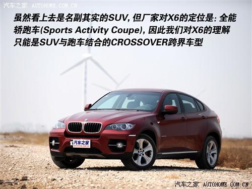 跨界的概念最早出現(xiàn)在尺寸比較小的車上,例如我們接觸較早的SX4和CROSS POLO,但誰也沒有規(guī)定只有小車才能跨界吧?現(xiàn)在跨界的概念已經(jīng)延伸到了SUV和跑車領(lǐng)域,那么今天我們體驗的寶馬X6是怎么跨界的呢?廠家說它是一款全能轎跑車,或者說是一款具備越野功能的轎跑車,所以我們可以認為它是一款SUV和轎跑車跨界的車型。