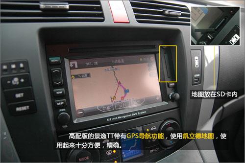 特別值得一提的是,“景逸TT”擁有5.8英寸多功能觸摸液晶顯示屏,其音響系統功能多元,不僅可以播放CD、MP3、甚至連SD卡中的音樂文件也可以播放。