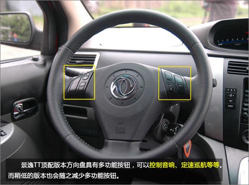 作為一款“高性價”比轎車,景逸的配置看起來有些眼花繚亂,甚至出乎意料:四向可調節方向盤、左腳休息踏板、泊車輔助系統、倒車影像系統、可外接音源(AUX/USB/iPod等)、CD支持MP3/WMA、6喇叭環繞揚聲器系統、自動頭燈、空調后排出風口等這一切都體現出景逸TT超高的性價比。